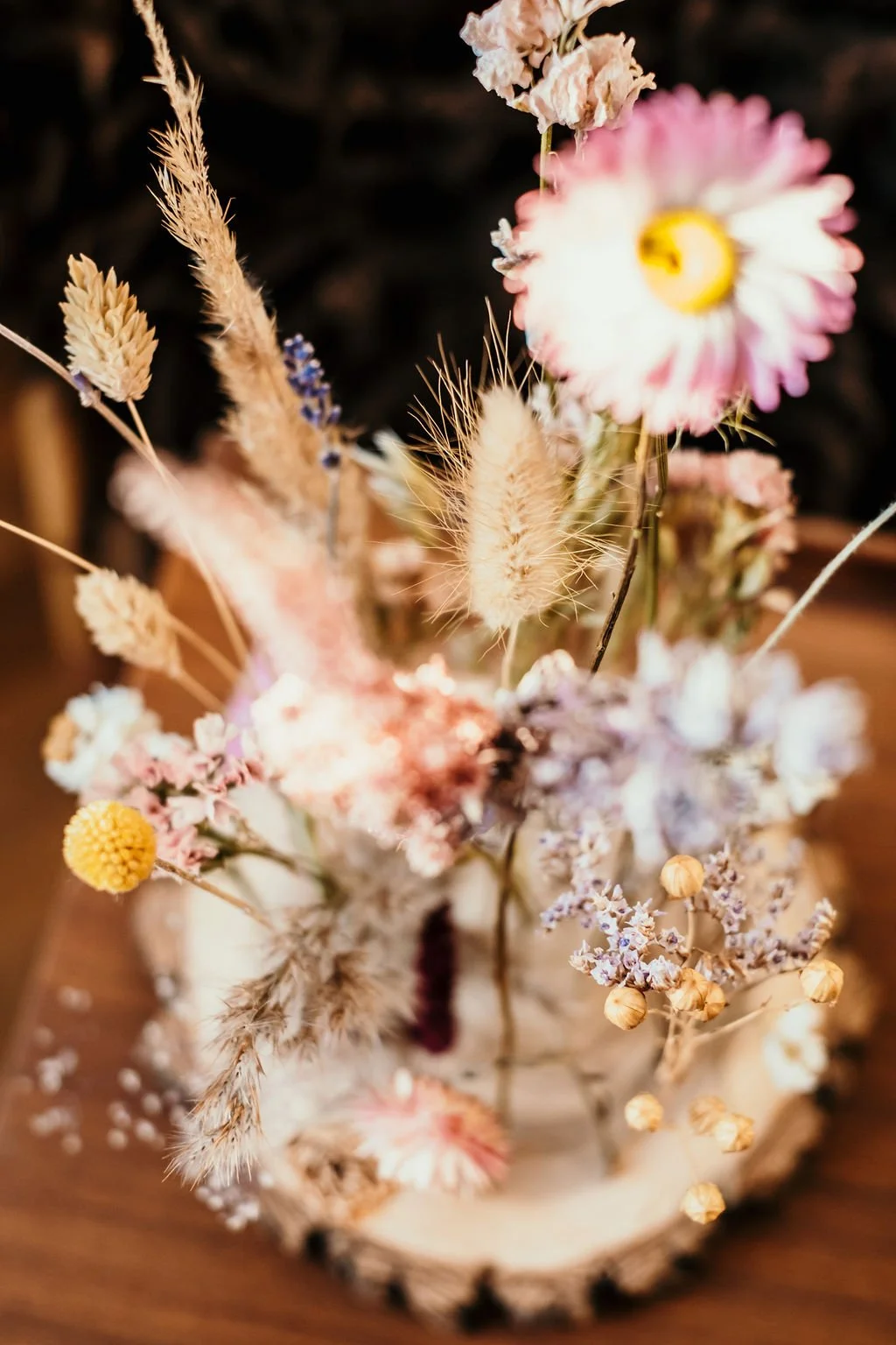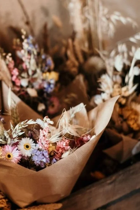 Mijn droogbloemen creaties worden enkel samengesteld met “schone bloemen”, natuurlijk geteeld en gedroogd door de bloemenboerin. Er zitten dus geen chemisch geverfde of gebleekte bloemen in jouw boeketten, kransen en andere creaties!
